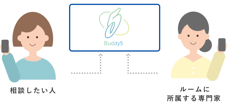 相談者はオンライン相談システムを利用してバディルームに所属する専門家と通話を行います。